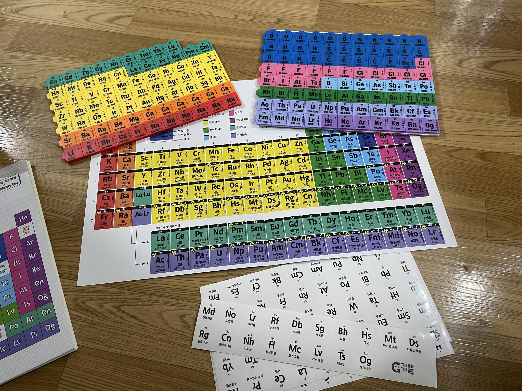 원소 주기율표, 원소타일, 원소 학습 책 등 다양한 교재로 구성되어 있습니다.