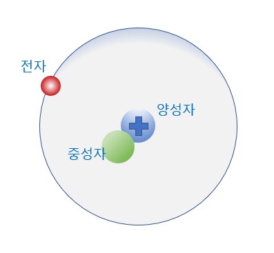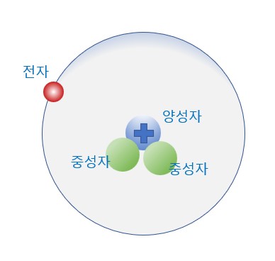 수소 – 가장 기본적인 구조를 가진 원소, 원자번호 1번, 양성자 한 개와 전자 한 개로 구성되어 있음(원자핵이 양성자 하나로 구성되어 있음)