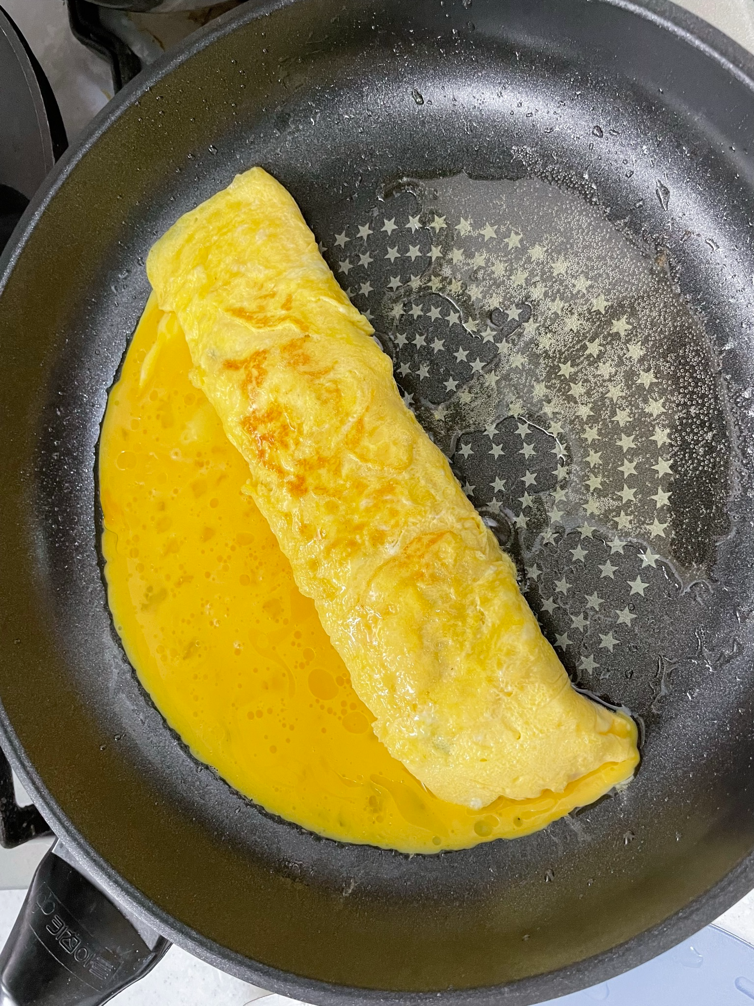 9. 아직 안만 부분에 계란물을 더 부어줍니다.