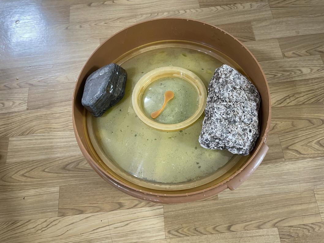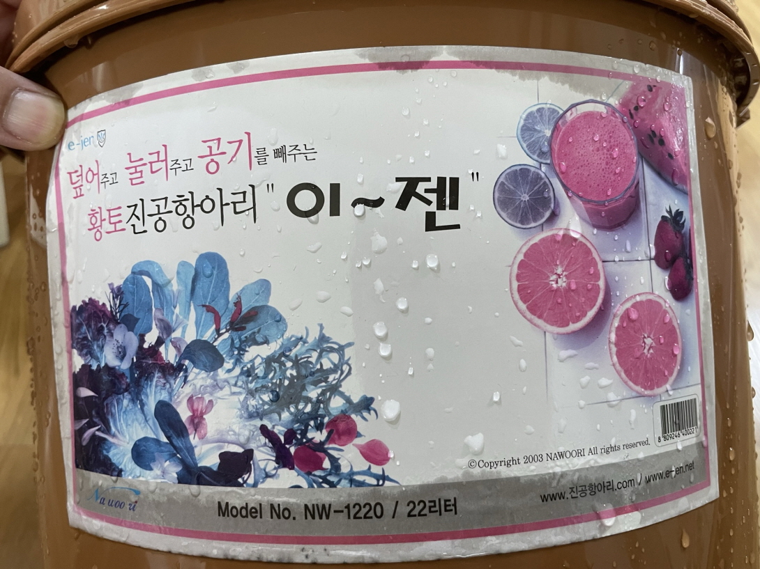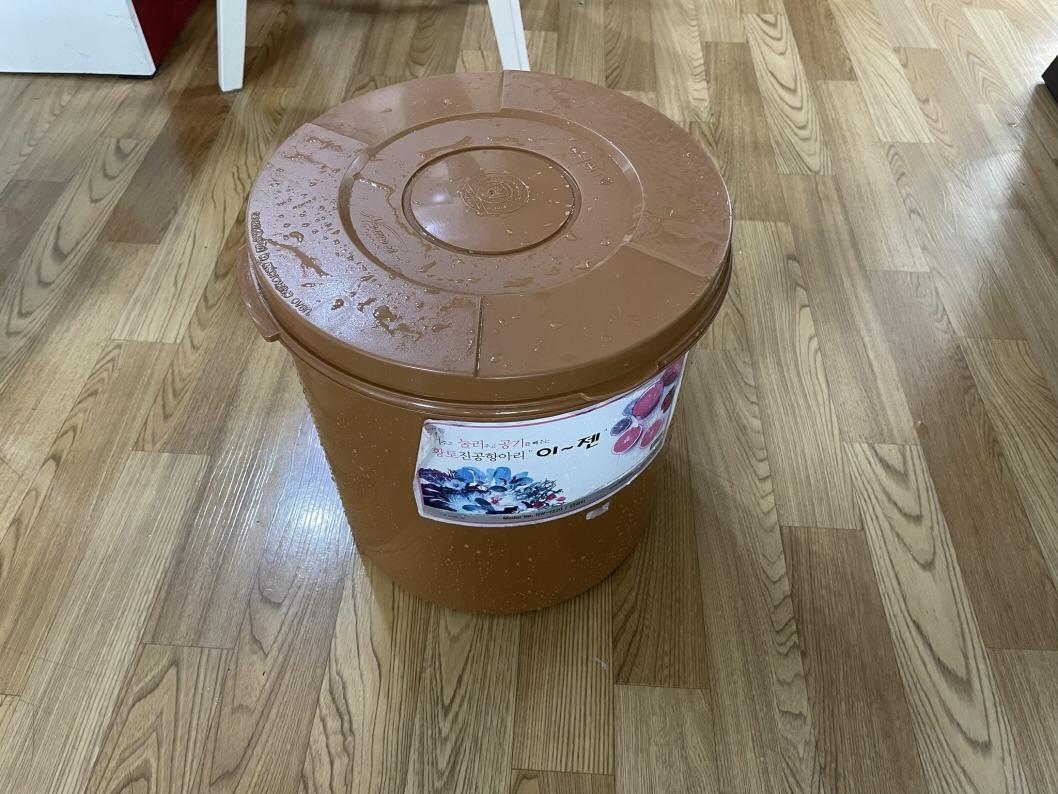 7 속 뚜껑을 닫고요. 무거운 돌을 올려놓습니다. 돌을 올려놓는 이유는 익으면서 오이가 숨죽으면 꼭꼭 눌러줘야 해요. 그래야 골마지가 덜 껴요. (골마지는 조금 껴도 괜찮아요. 익으면서 생기는 자연스러운 현상이에요.)