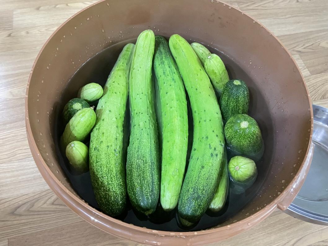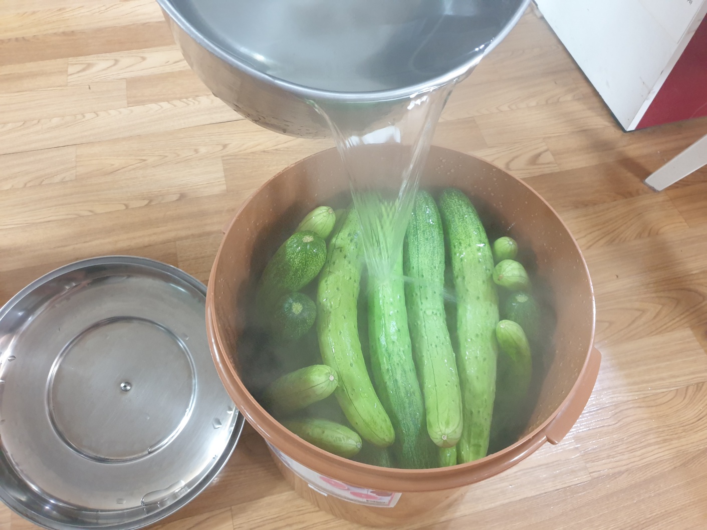 2 오이 안 씻고 해도 되는데, 저희는 그냥 씻어서 물기 닦고 말려서 했습니다.