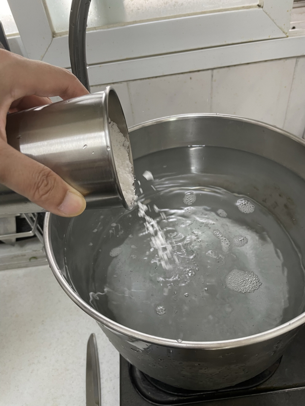 4 물에 소금 넣고 끓입니다. 소금은 물과 비율이 10:1로 하면 됩니다. 물 10리터에 소금두컵(500ml컵으로 2컵) 넣으면 돼요. (저희는 좀 짜게 하려고 반컵정도 더 넣었어요.) 싱거우면 맛이 없어요. 좀 짜야 골마지도 안낍니다.