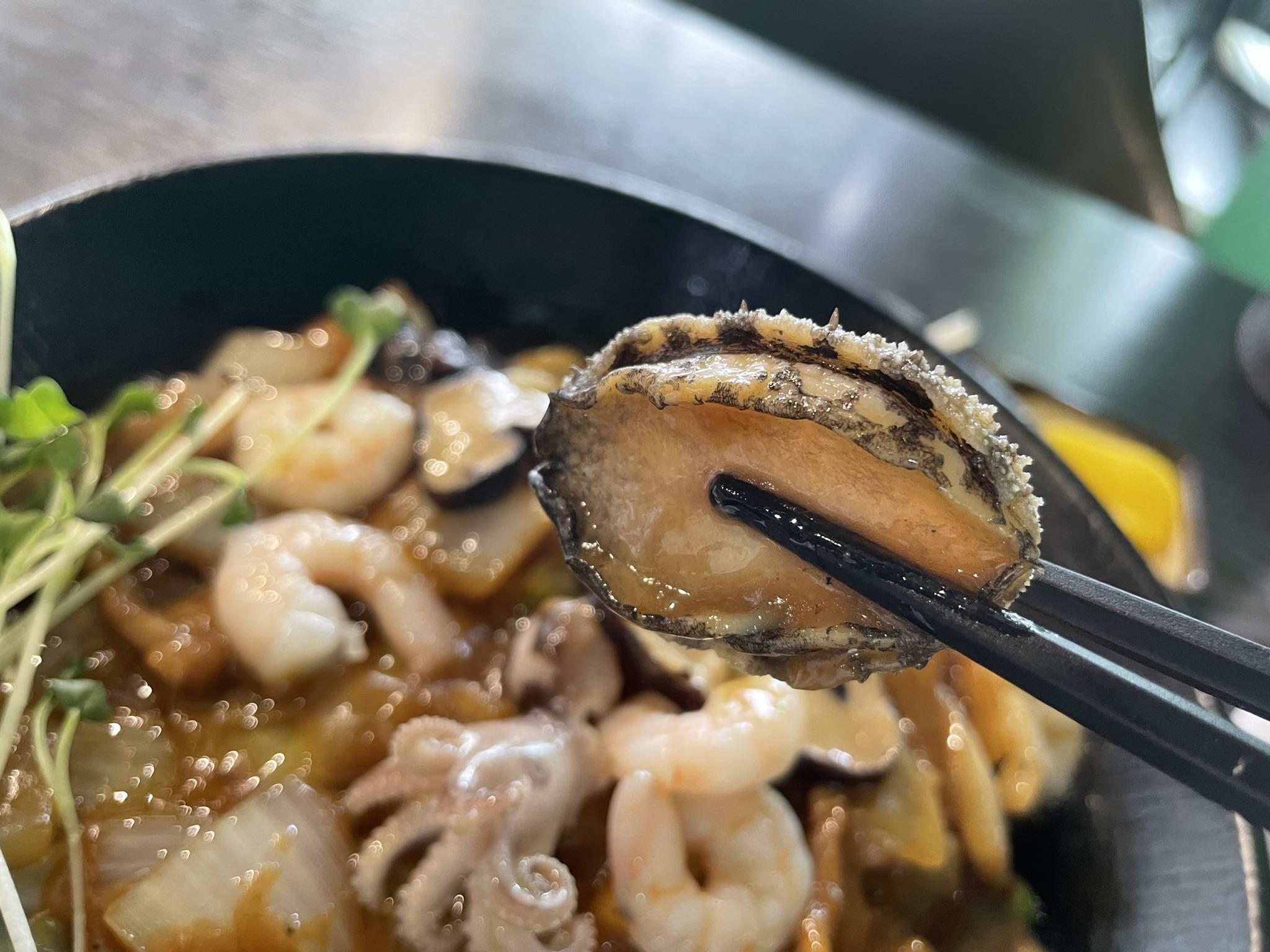 작은 전복이 한 마리 들어가 있구요. 그 외 해물 재료가 들어가 있네요.