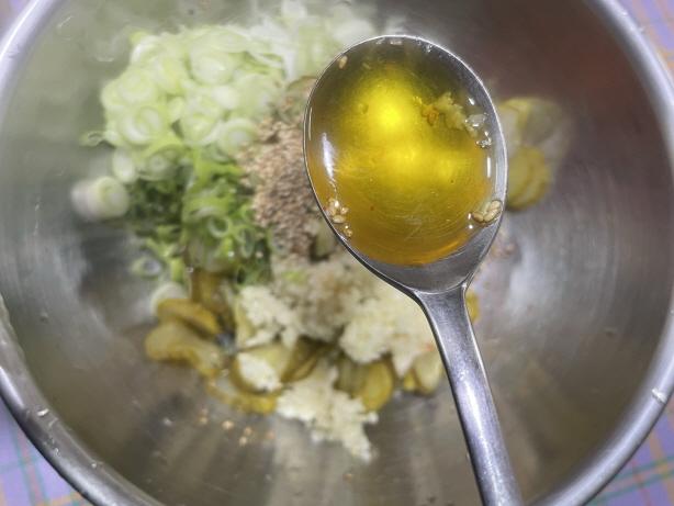 6 고춧가루, 매실청, 깨, 들기름 넣습니다.
