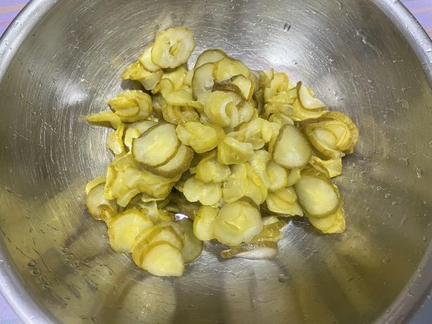 1 오이지를 물에 씻어서 2~3mm 정도 두께로 쓸어 준비합니다.