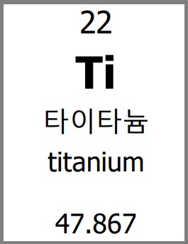 우리에게는 티타늄이라는 명칭이 익숙하지만 대한화학회에서는 미국식 발음인 타이타늄이라는 명칭을 정식명칭으로 사용합니다.