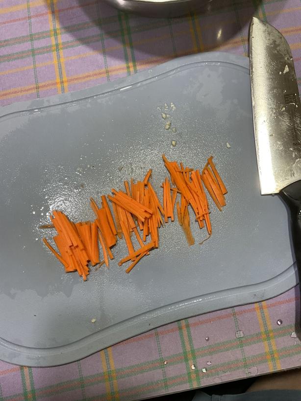 7. 당근과 양파를 얇게 채 썰어서 넣어 줍니다.
