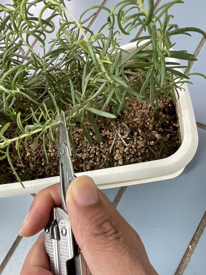 준비: 건강한 로즈마리 식물에서 15-20cm 길이의 신선한 줄기를 선택합니다. 가급적 아래쪽부터 3~4개의 잎을 제거하여 줄기의 일부분이 노출되게 해야 하지만 저는 그냥 물에 담았네요.