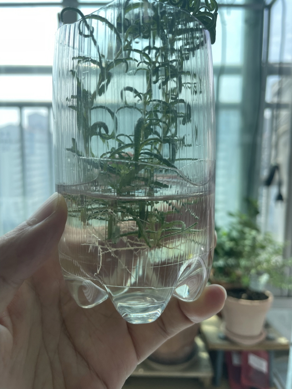 뿌리가 나올 때까지 기다리기: 약 2-3주 내로 뿌리가 자라기 시작합니다. 뿌리가 5cm 정도로 자란 후, 흙에 옮겨 심을 수 있습니다.