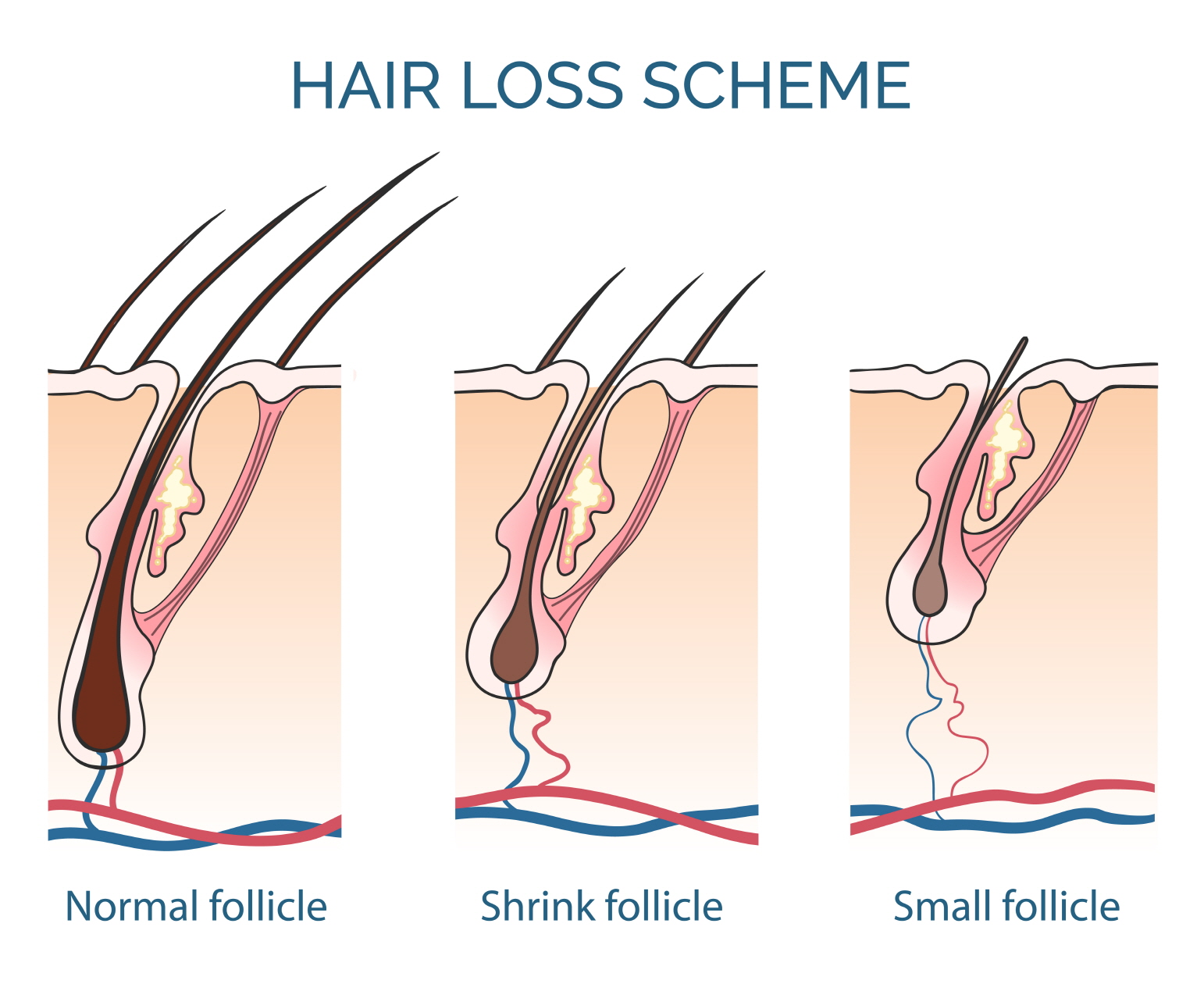 안드로겐성 탈모의 주요 원인은 유전적 요인과 남성 호르몬인 안드로겐의 높은 수준 또는 민감성에 기인합니다. 이 호르몬은 머리카락의 성장 주기를 단축시키고, 새로운 머리카락이 더 얇고 짧게 나오게 만듭니다.