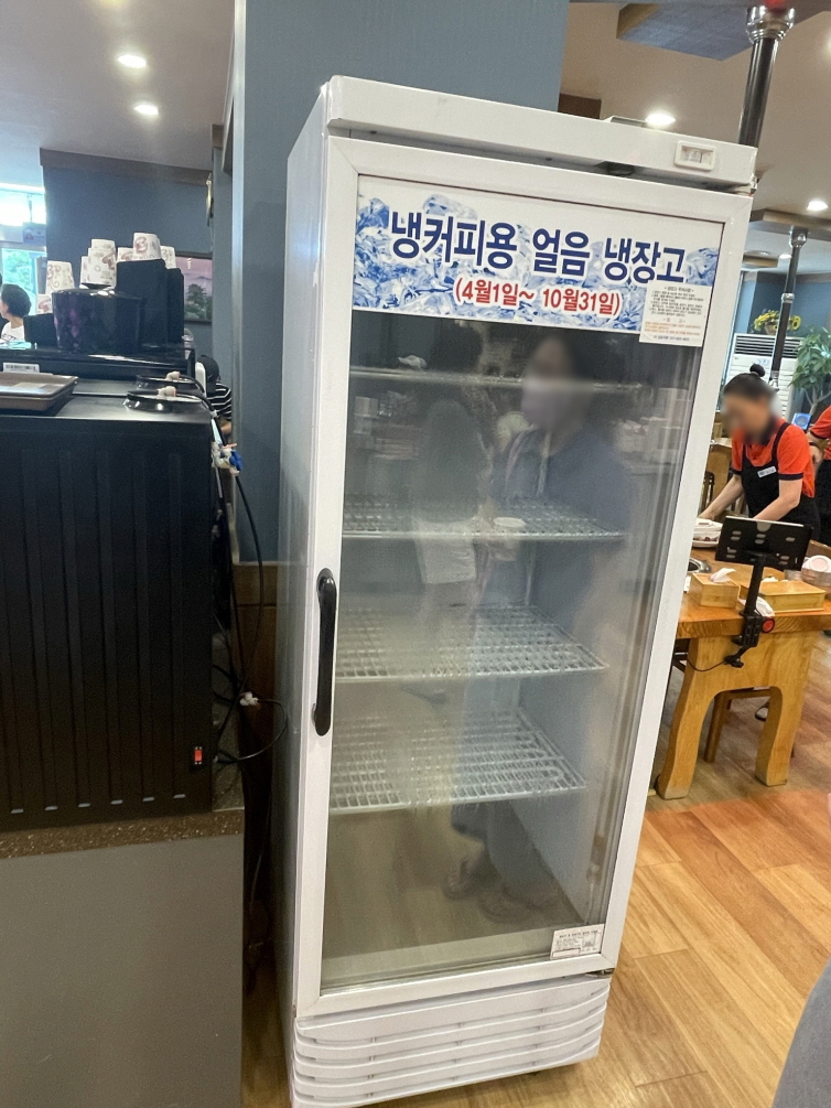 냉장고에 얼음컵을 가득 넣어 놓고 무한 리필로 꺼내 먹을 수 있거든요. 얼음컵도 11시에만 한 번만 넣어 놓고 이후엔 다시 안 채워 주시는 것 같아요. 그래서 이 집은 오픈 시간 맞춰 가야 해요. ^^;