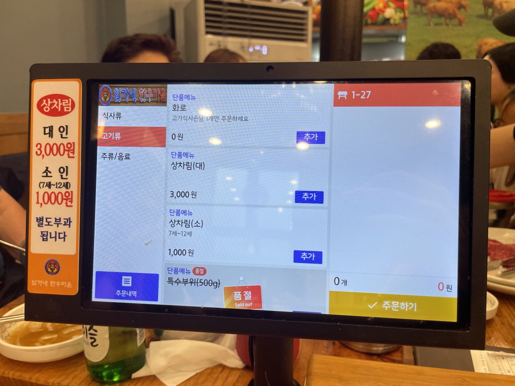 주문은 자리에 앉아서 키오스크로 자동 주문하고 계산은 나갈 때 하면 돼요.