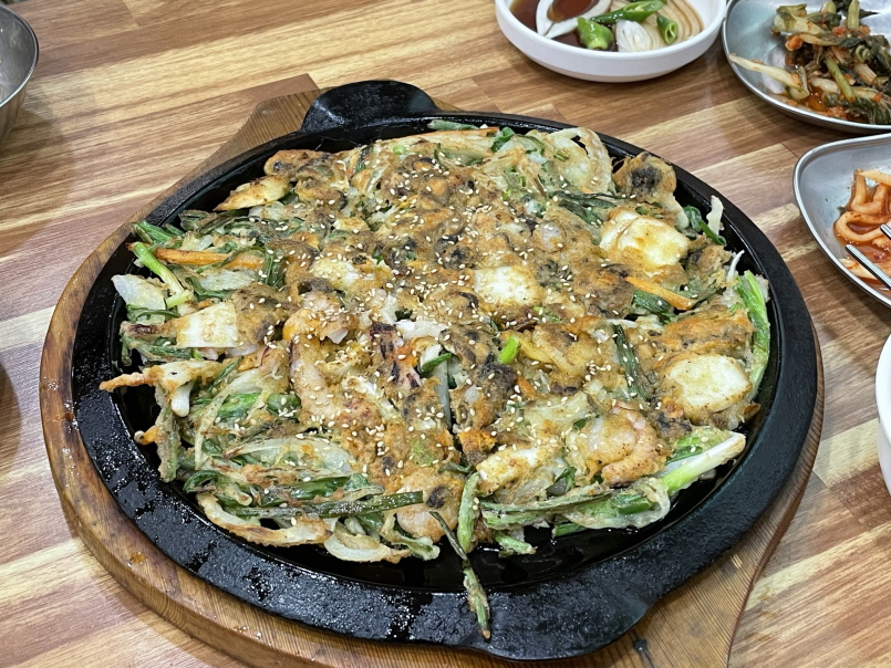 해물파전과 바지락 칼국수를 주문하였습니다.