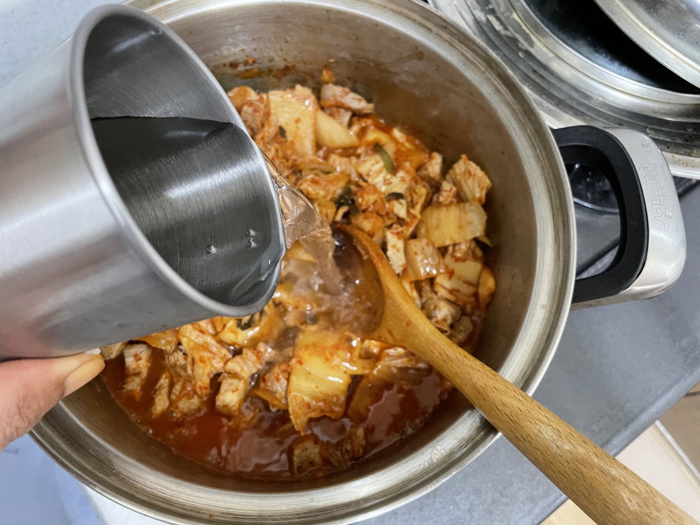 저희는 고기가 많이 들어간 김치찌개를 좋아해서 고기 많은 김치찌개를 끓여 봤어요.