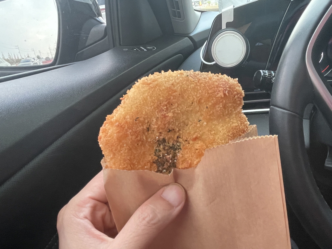 겉바속촉 이에요. 감동고로케(야채고로케, 2,500원)가 조금 매운 맛이에요.