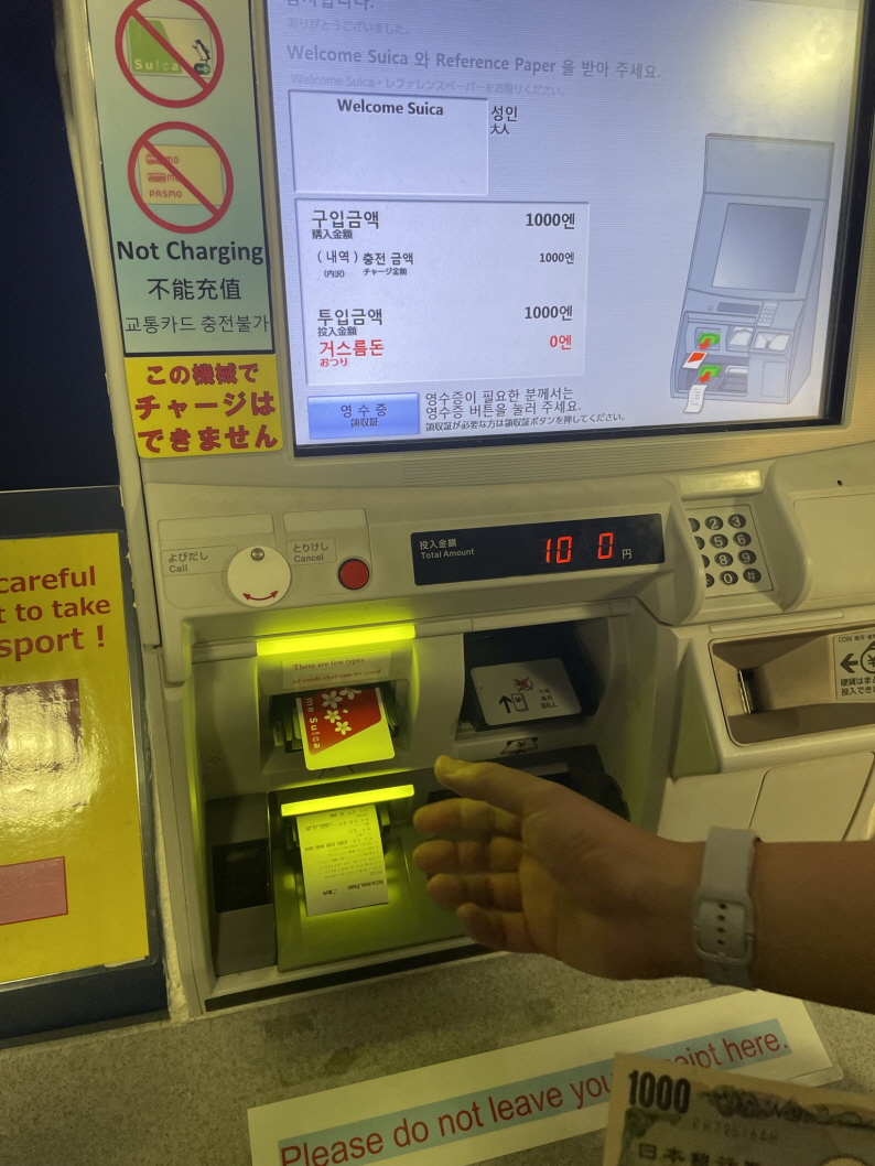 5. 영수증과 함께 웰컴 스이카 카드가 발급됩니다.