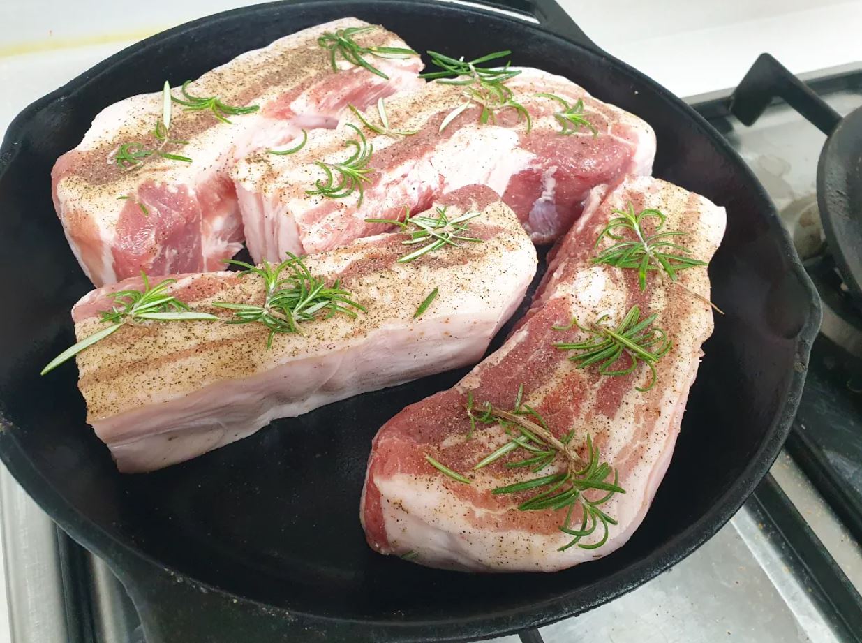 무쇠팬과 무쇠뚜껑이 있으면 물 없이도 돼지고기 수육을 요리할 수 있습니다.