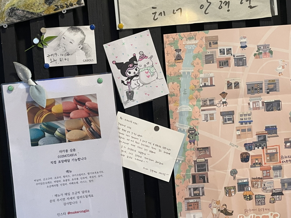 이 집 사장님이신 가요? 직원분 중에 그림을 잘 그리시는 분이 있나 봐요. 벽에 붙어있는 그림이 직접 그린 것 같은데 누가 그렸는지 그림 솜씨가 정말 좋으신 것 같네요.