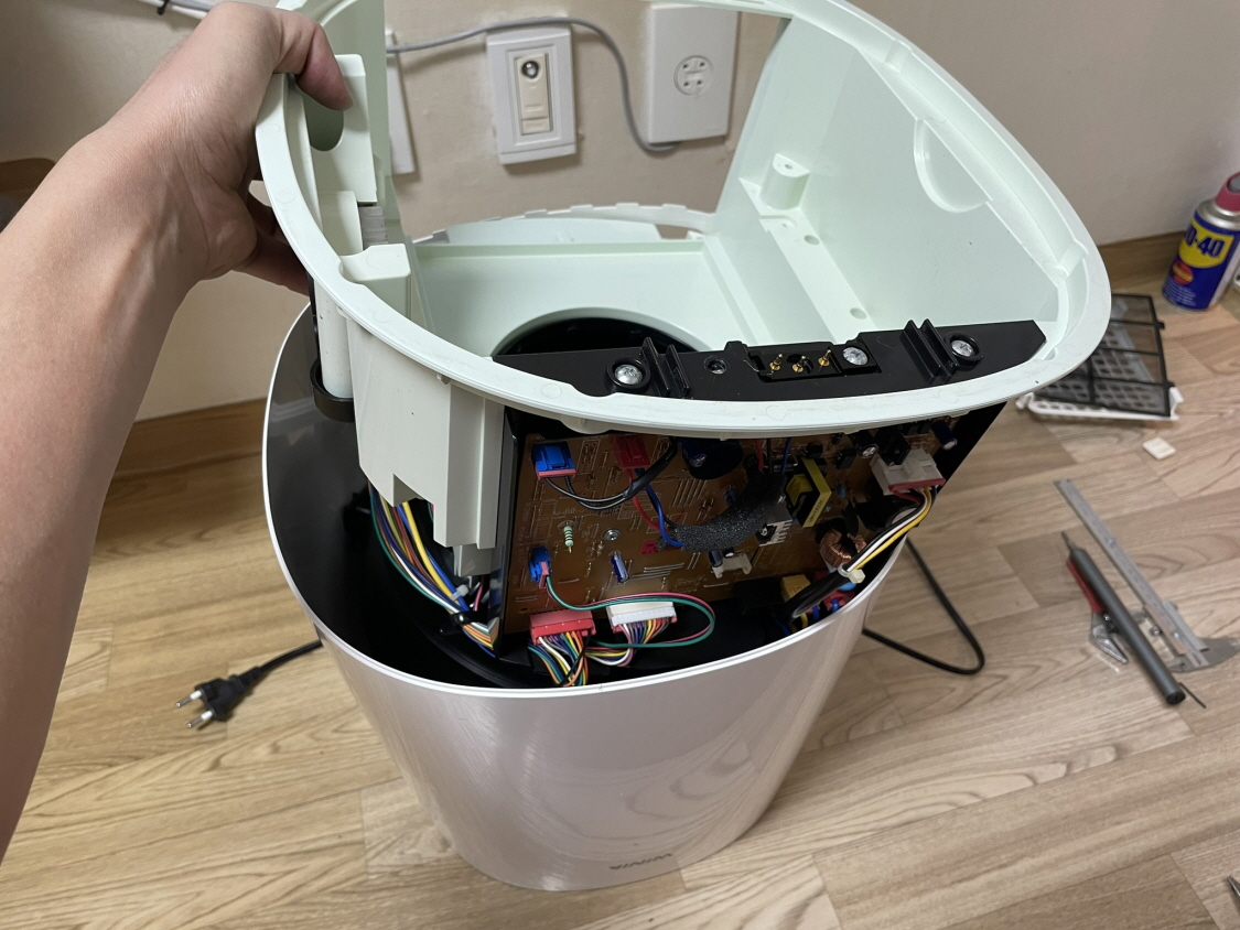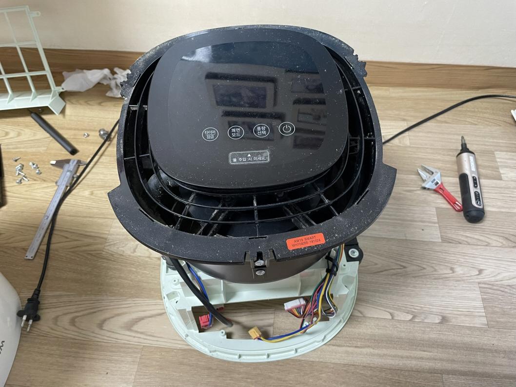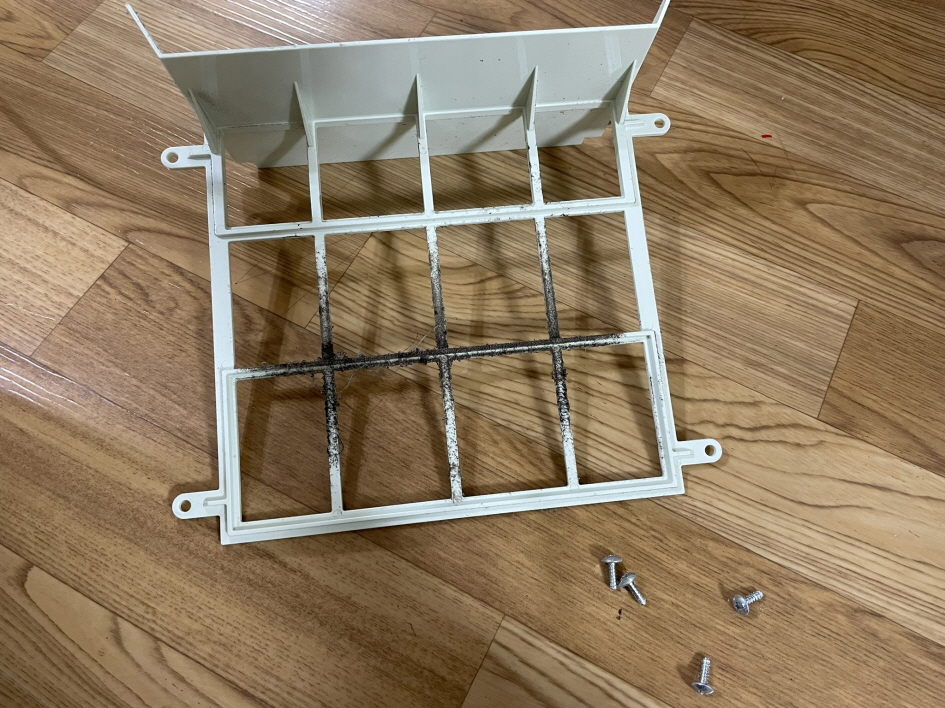 여름에는 안 켜고 건조한 계절에만 켜기 때문에 1년에 한 번은 이렇게 분해해서 청소해 줘야 해요. 손재주 없어도 분해하는 건 쉬워요. 누구나 쉽게 청소할 수 있습니다.