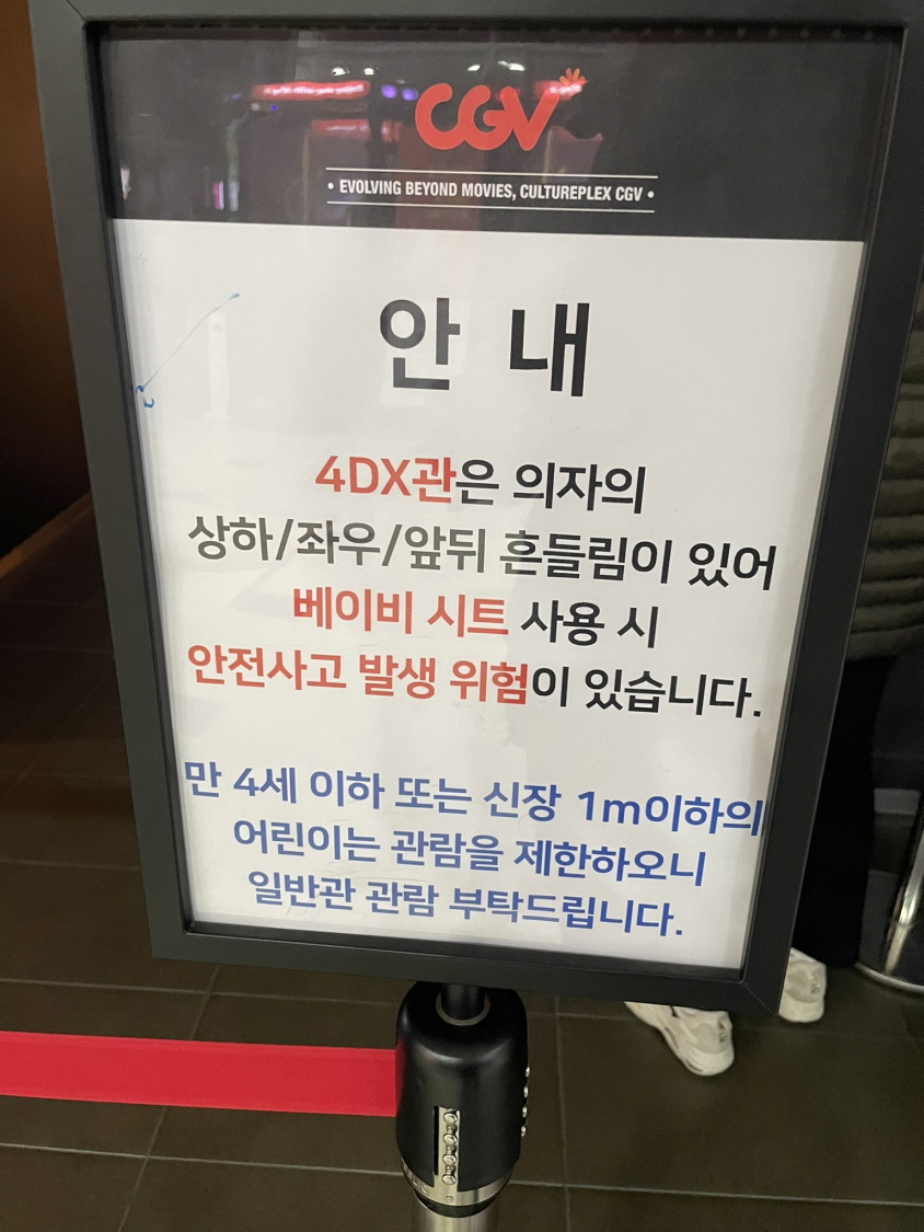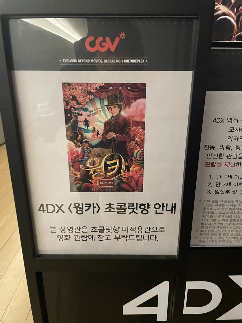 4DX이지만 일산 CGV에서는 초콜릿 향이 적용되지 않는다고 하네요.
