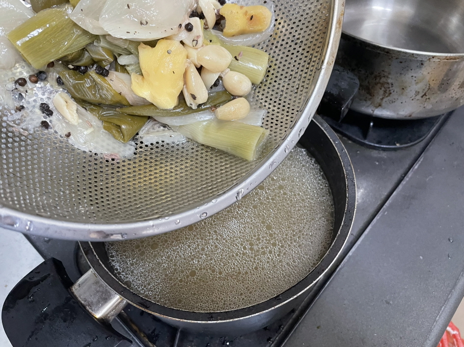 6. 육수에 끓였던 모든 재료를 건져서 버립니다.