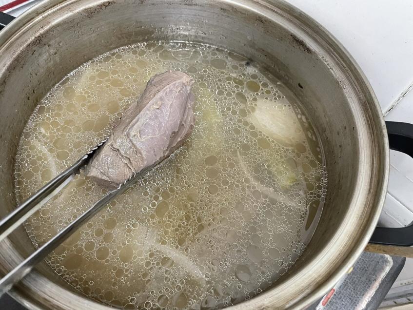 2. 3리터의 물에 양지, 아롱사태를 넣고 끓입니다.