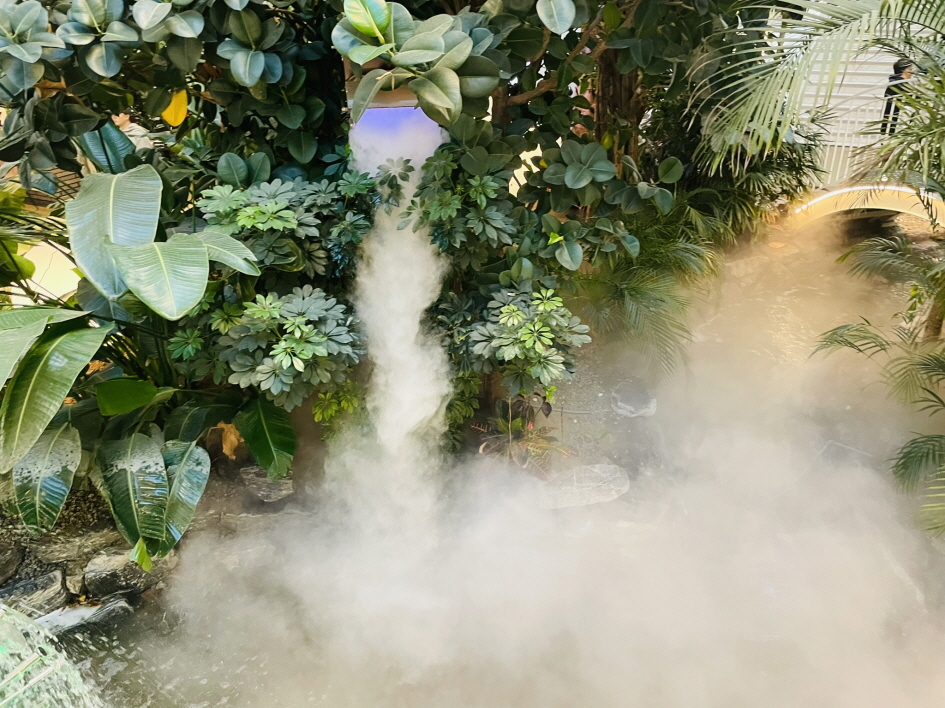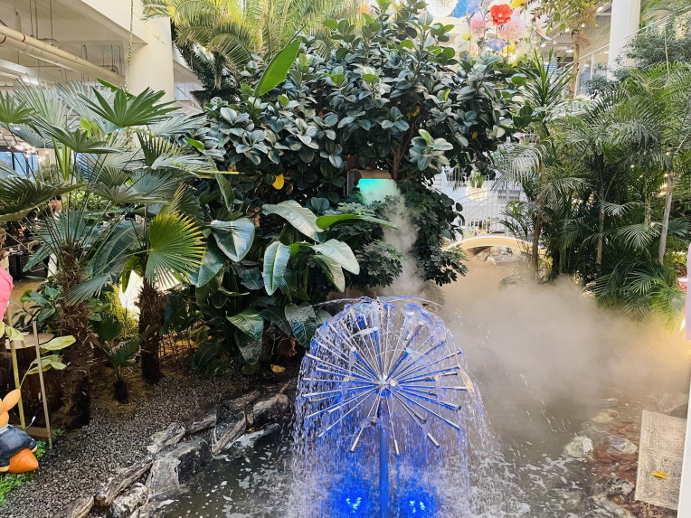 1층 중앙에는 물이 흐르는 숲을 조성해 놨어요. 열대 나무도 많네요.