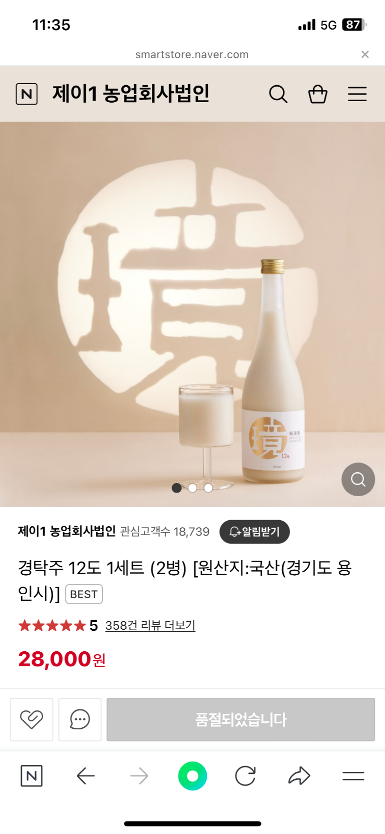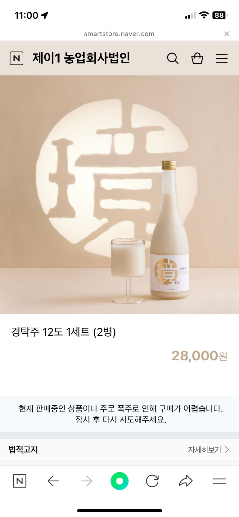 경탁주는 한정 생산 상품이고, 매일 오전 11시에만 판매사이트 오픈됩니다.