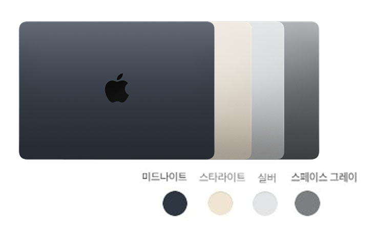 색상은 미드나이트, 스타라이트, 실버, 스페이스 그레이 4가지입니다.