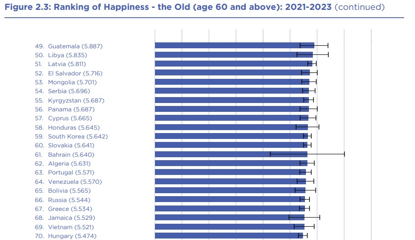 또한 ‘60세 이상 노년층의 행복 순위’에서 우리나라는 59위로 더 낮네요. 노년 준비 잘해야겠습니다.