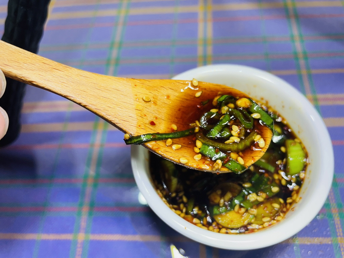 그리고 만들어 놓은 소스에 청양고추와 양파를 다져서 넣고 식초와 물을 좀 더 넣으면 소갈비살 같은 소고기구이 찍어 먹는 소스로 맛있습니다.