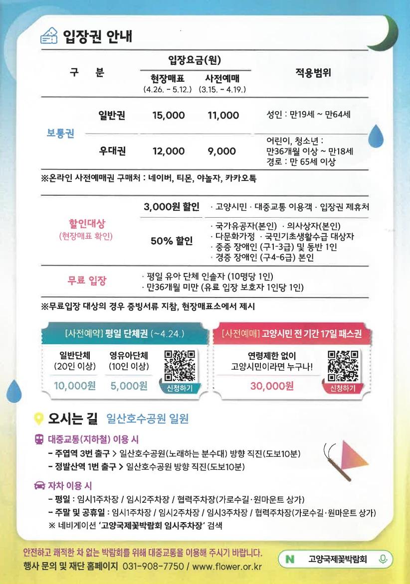 3천원 할인- 고양시민, 대중교통 이용객, 입장권 제휴처
