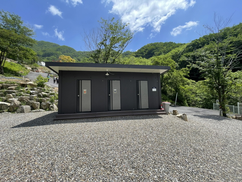 저희 사이트 위치는 B-6인데요. 위치가 아주 좋은 것 같아요. 화장실과 개수대가 멀지도 너무 가깝지도 않았어요. B사이트 입구에 깔끔한 전용 화장실과 개수대가 있습니다.