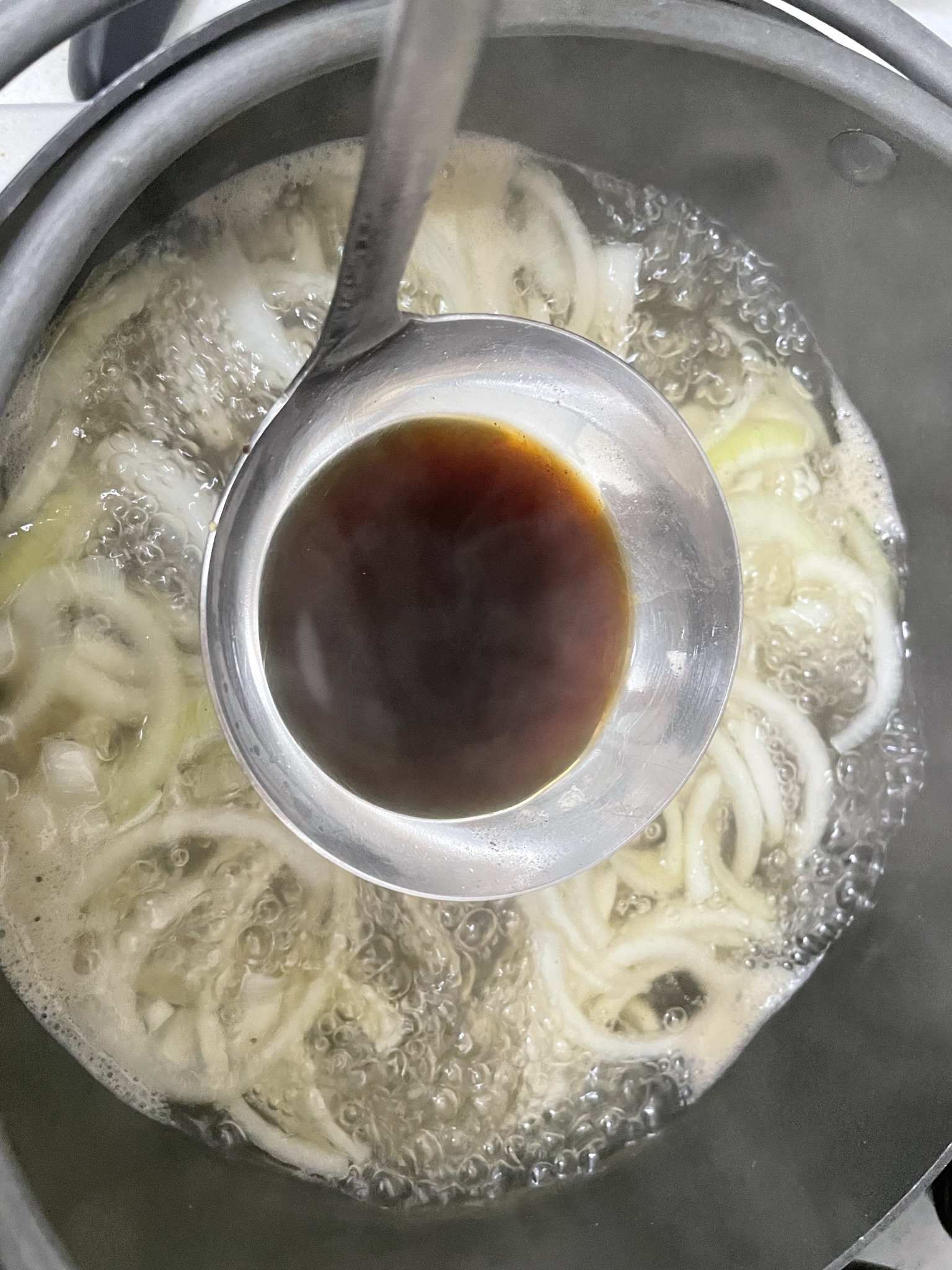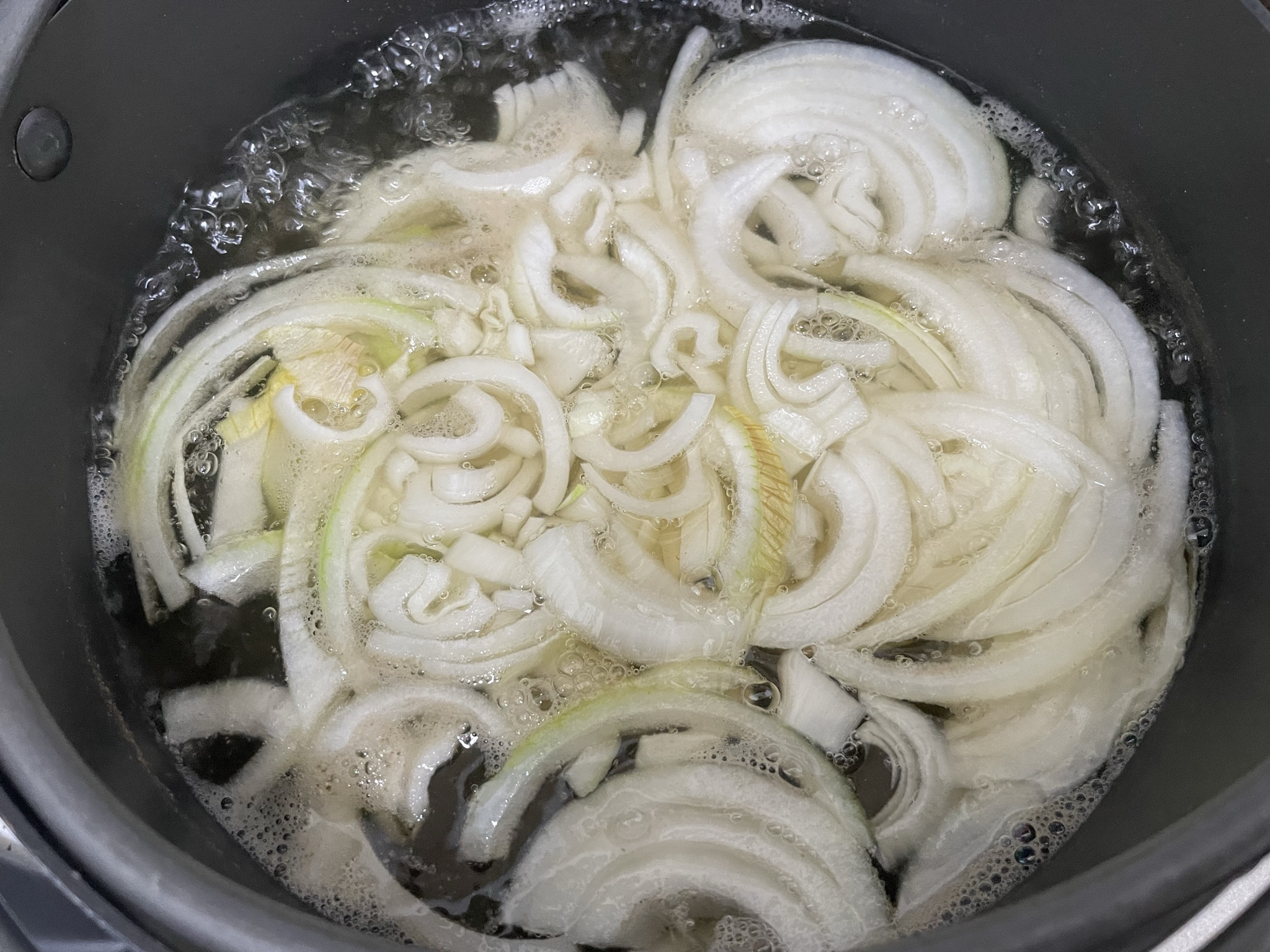 2.     5분끓였으면 티백을 건져내고 얇게 썰어놓은 양파를 넣고 약 5분정도 더 끓입니다.
