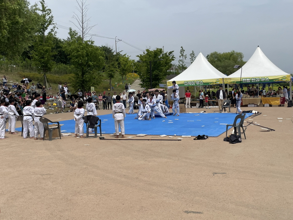 사전 행사로 어린이 태권도 시범단의 공연 중이네요.