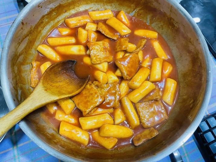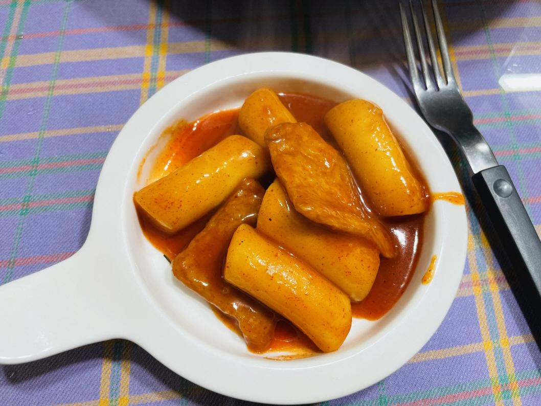 코스트코에 가방 사러 갔다가 시식하고 너무 맛있어서 산 떡볶이. 고구마 소스가 들어서 매콤달콤 쫀득쫀득 하네요