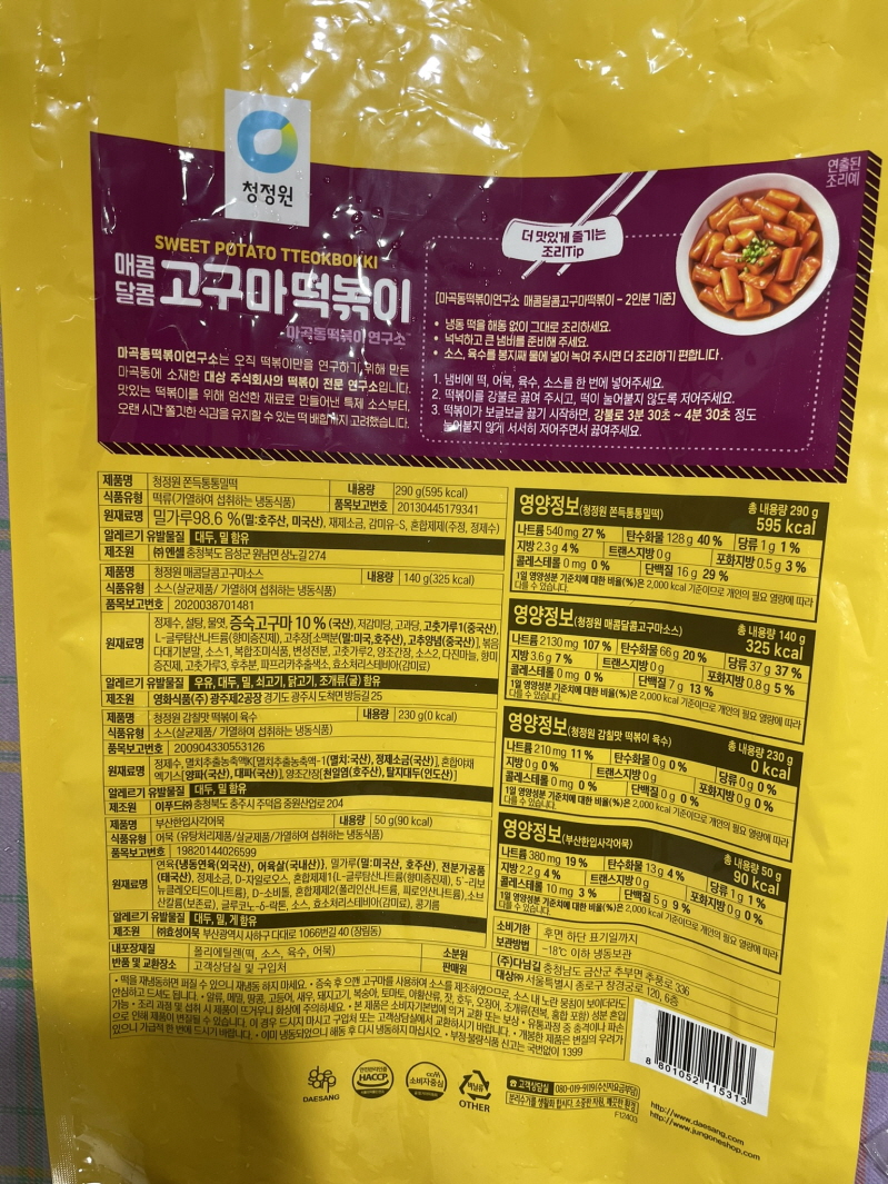 내용물을 보니 매콤달콤 고구마 소스는 왜 한 개 더 들어있는 것일까요? 냉동실에 넣었다가 떡하고 어묵 사다가 한 번 더 해 먹어야겠네요.