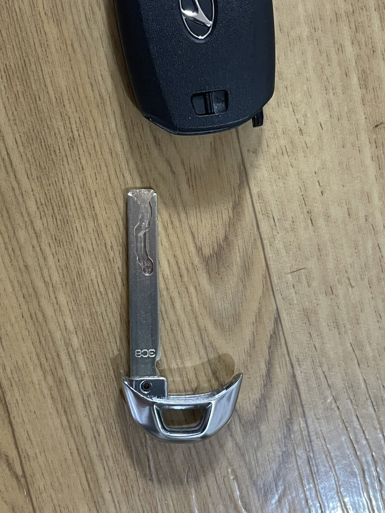 배터리 교체 방법은 간단해요. 스마트키의 뒷면에 레버를 옆으로 밀면 안에 있던 차 키가 분리돼요.