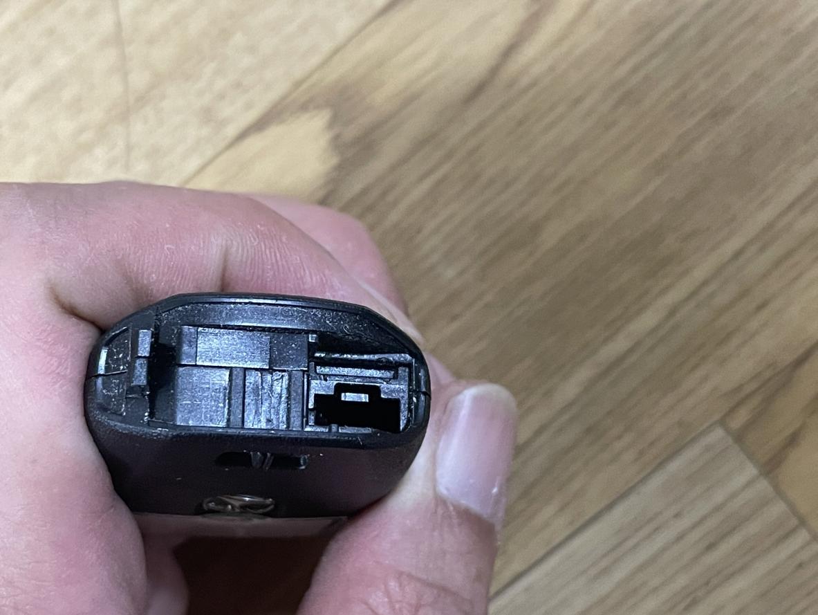 스마트키의 분리된 부분을 보면 차 키의 끝부분이 맞을만한 네모난 홈이 있어요.