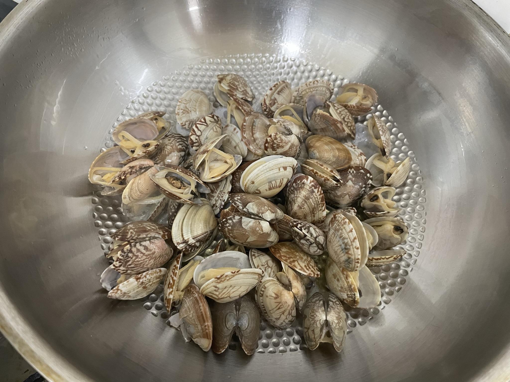 실온해동 1시간 또는 유수해동 30분, 해동된 바지락은 찬물에 2~3회 세척후 물기를 제거해 줍니다.