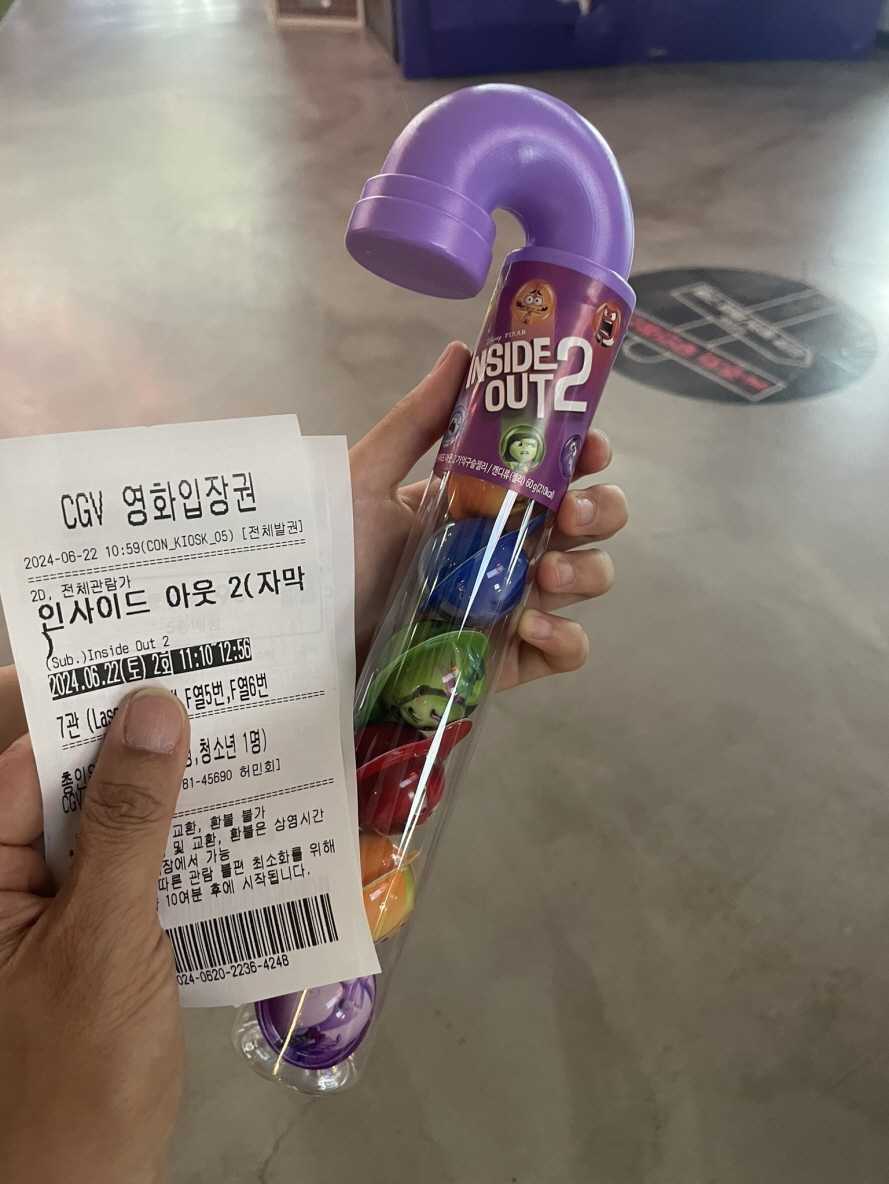팝콘과 커피, 인사이드아웃 2 굿즈를 샀어요.