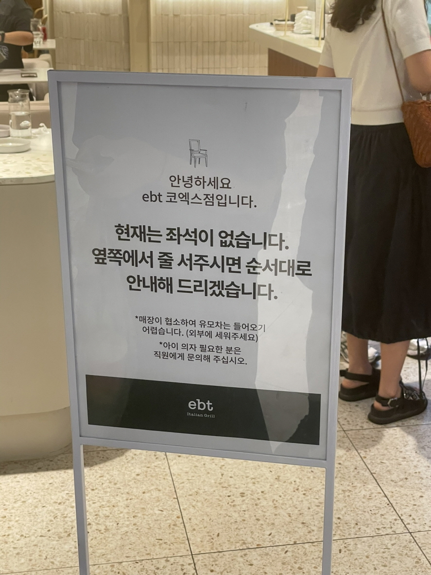 주말에 코엑스 전시장 관람을 하려고 갔어요. 전시장 관람은 많이 걸어야 하고 전시장 안에서 오래 있어야 하기 때문에 식사 먼저 하려고 지하에 있는 코엑스몰을 찾았죠.