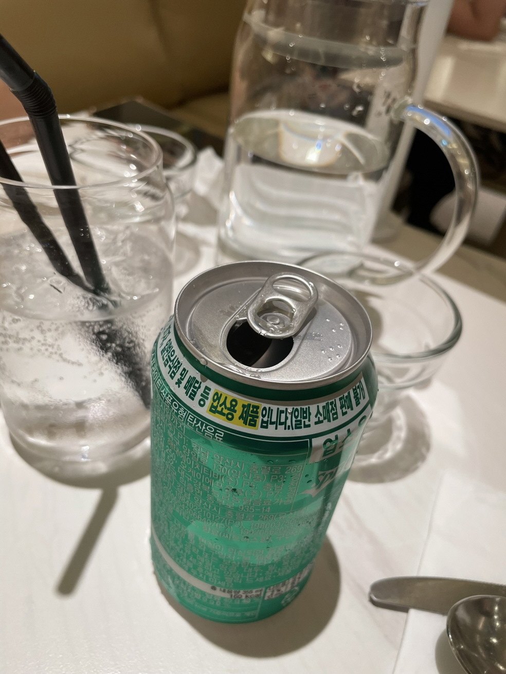 코엑스몰에 많은 음식점이 비슷한 이벤트음료를 주는데요. 여기도 카카오채널 친구추가하면 음료를 먹을 수 있어요. 자리마다 탄산음료가 있는 것을 볼 수 있어요. 따로 음료주문은 안 해도 되겠네요.