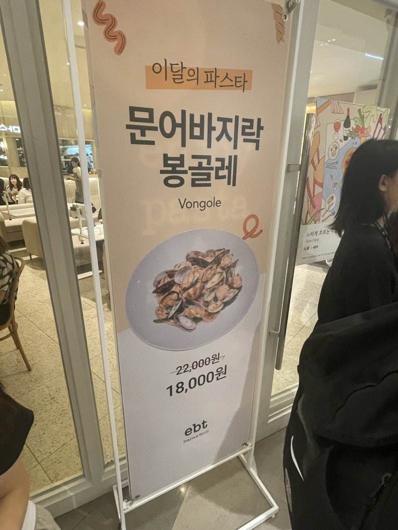 이비티는 파스타, 스파게티 맛집인데요. 식사시간에는 웨이팅이 있으니 조금 일찍 가야 합니다.