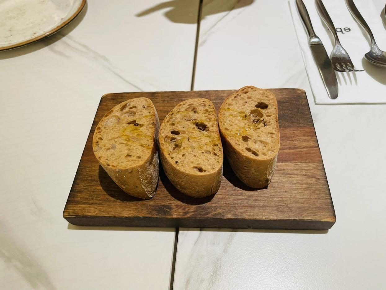 애피타이저로 나오는 바게트빵으로 먼저 배고픔을 달래고 조금 기다리니까 주문했던 요리가 나옵니다. 빵은 부드럽고 맛있어요.