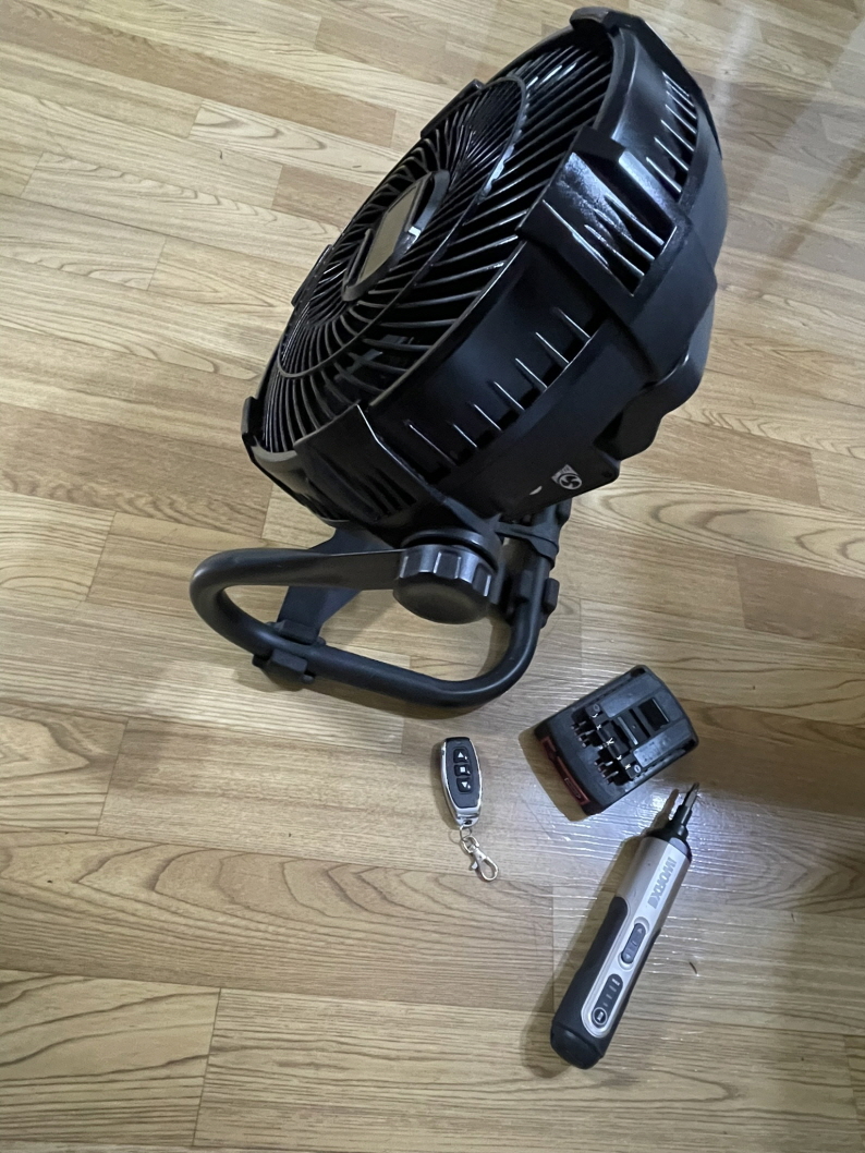 캠핑용이나 산업현장에서 사용하는 휴대용DC선풍기입니다.일반 USB충전하여 사용하는 소형 선풍기가 아니고 전동공구용 배터리를 사용하는 선풍기인데요. 전동공구 많이 사용하시는 분들은 유용하게 사용하는 하이코 선풍기를 리모콘 선풍기로 개조해 봤어요.