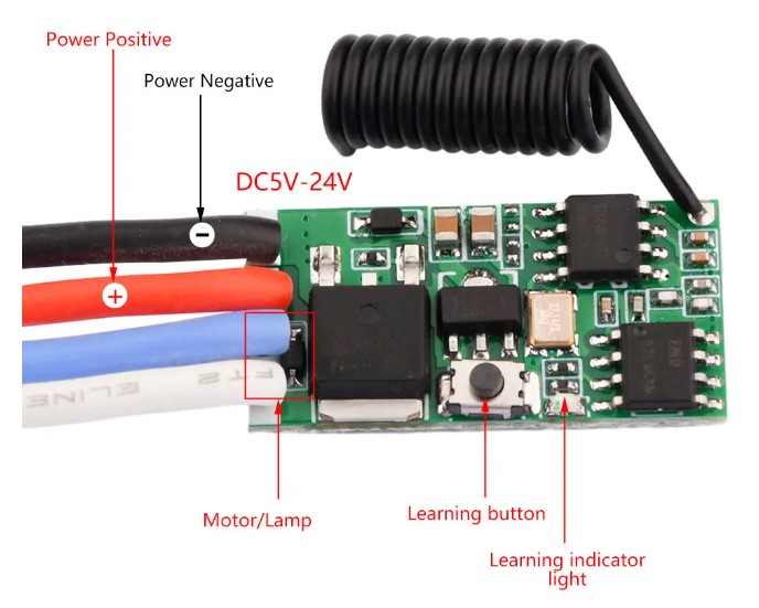 처음에 리모콘과 페어링 한 번만 해주면 돼요. 모듈에 있는 스위치만 한번 누르고 리모콘 스위치를 누르면 간단하게 페어링 됩니다.
