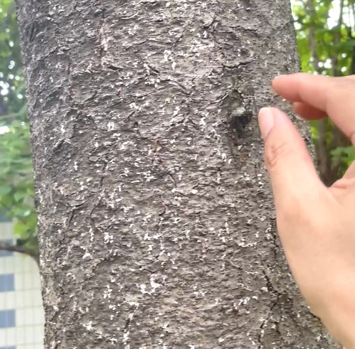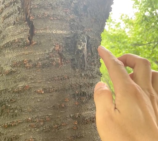 나무에 붙어있는 매미 뒤로 다가가서 손가락모양을 이런 모양으로 만듭니다.
