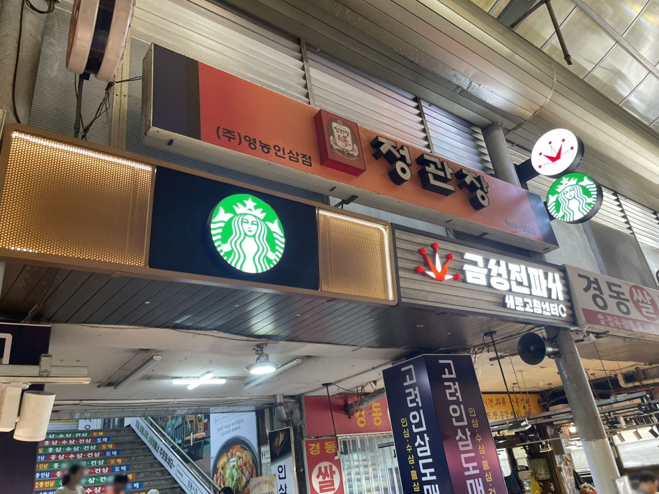 매장 입구에 스타벅스10대 매장이라는 표지판이 이해됩니다. 경동시장은 너무 유명한 서울의 대표적인 재래시장인데요.