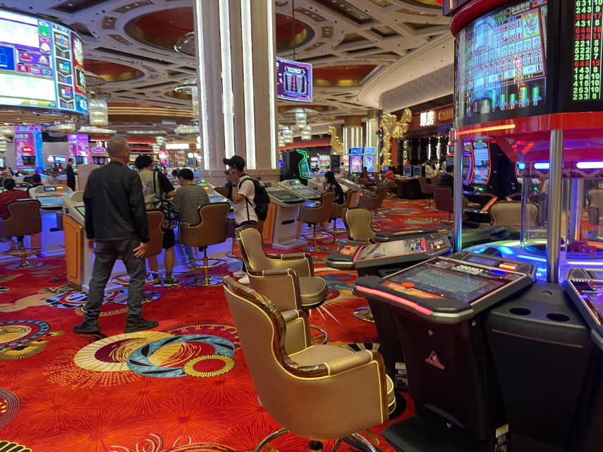 카지노 게임장은 외부에서는 잘 안보이게 칸막이로 가려져 있어요. 쇼핑몰과 식당이 있고 아이들도 지나다니는 공간이기 때문이죠. 또한 밖에서는 사진촬영이 되지만 안에서는 금지되어 있어요.